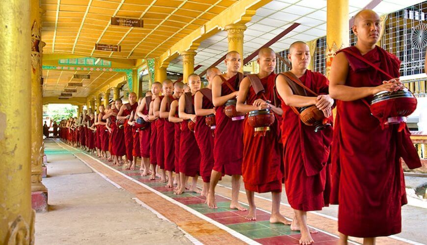 Continue to visit the Kya Khat Waing Monastery where you can study about Myanmar Buddhist Monastic life. Over 500 monks take their lunch at 11:00 AM at dining room.