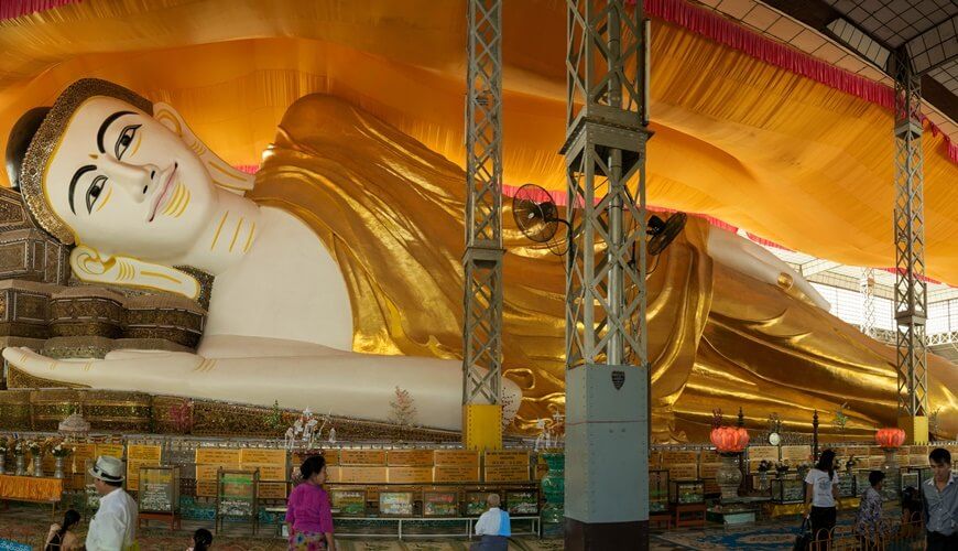 After 1.5-hour drive via Burmese countryside filled up with green rice paddy fields, we arrive in Shwethalyaung Pagoda where you will have time to visit the reclining Buddha Statue. The Buddha, which has a length of 55 metres and a height of 16 metres, is believed to have been built in 994, during the reign of Mon King Migadepa.