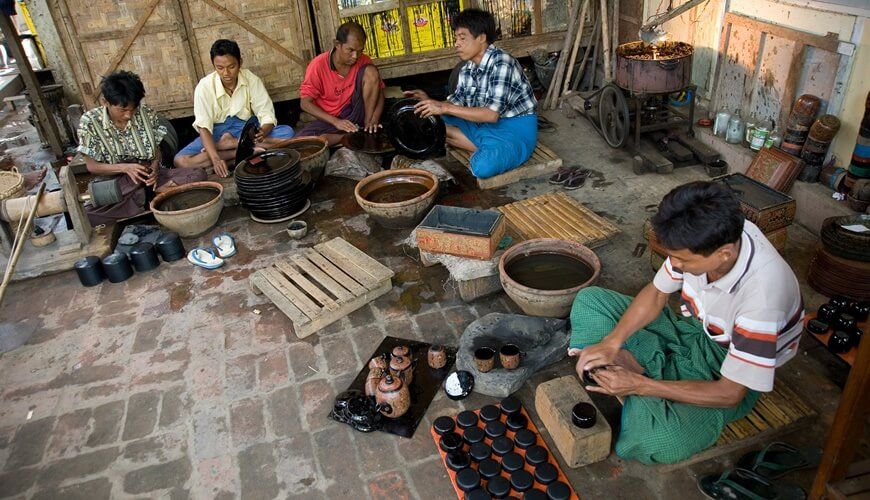 In the afternoon, we pay a visit to a lacquer workshop where you will have a great opportunity to learn more about the sophisticated traditional handicrafts of Bagan. The spectacular Ananda Temple is our next stop. It is believed to be the most beautiful construction in the temple plain. Then, we move to visit the tallest temple of Bagan – Thatbyinnyu and the brick work masterpiece of Dhammayangyi temple. Finally, there is no better way to end your day than climbing on the top of a surrounding temple enjoying the breath – taking sunset moment of the ancient city.