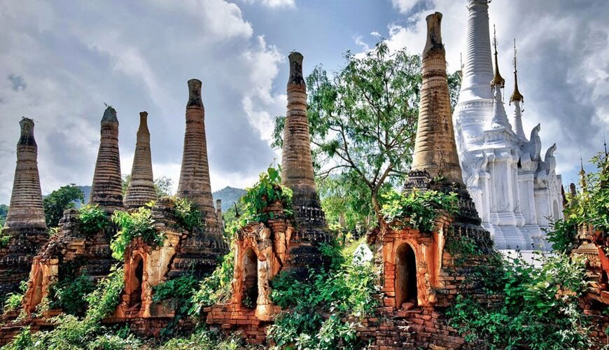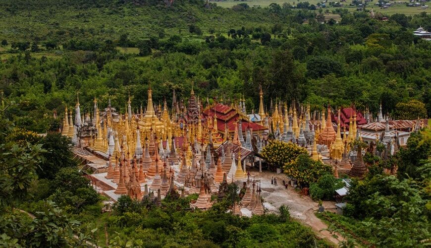 Then, after 1 hour boat ride on a small canal, we approach the village of Pa Oh in Indein which is located on the western bank of Lake Inle. Take a relaxing walk around the village before you climb to the top of the hill to visit the outstanding site of Shwe In Thein pagoda complex. Once you arrive at the place, you will be amazed by a great number of stupa ruins in different shapes and sizes enshrined a seated Buddha statue in the center. From here, visitors can also catch a panoramic view of Indein and its tranquil surroundings. Without a doubt, Indein Pagoda Complex is a not – to – be – missed site in your Inle Lake’s exploration.