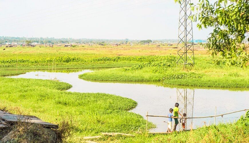 Then, we move to the Central Railway Station to catch our train. This railway network was constructed to serve Yangon Metropolitan Area. When the train starts running, the scenery is changing, from the bustling downtown to the peaceful rural areas.