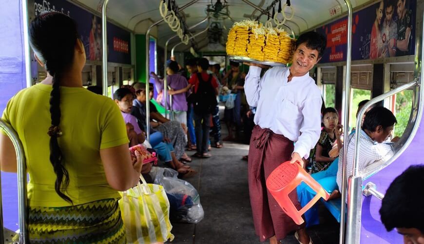 Your Yangon city tour will not be completed without taking an interesting trip on the Yangon circular train. This is a unique way to see a full picture of this fascinating city.