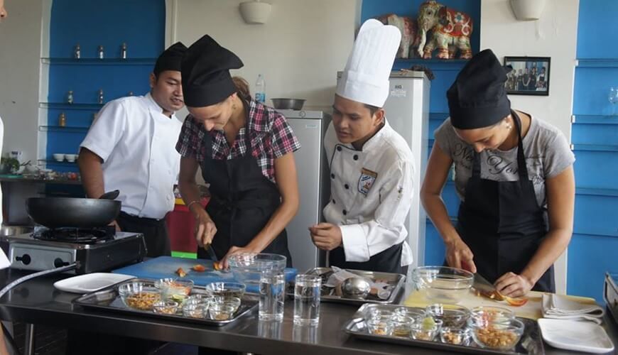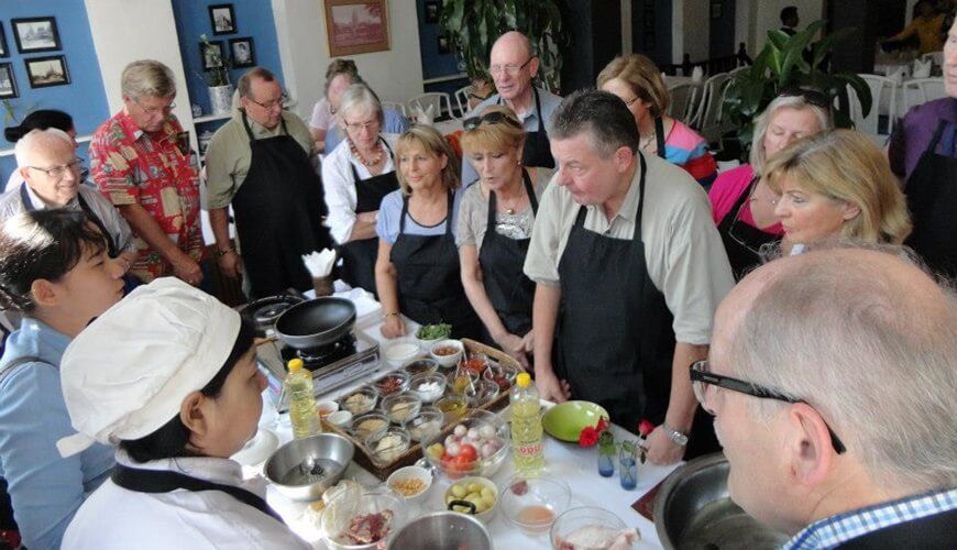 Your culinary adventure kicks off with a welcome drink at the colonial building of Monsoon restaurant. You will then be accompanied to a downtown market, selecting and buy essential ingredients for your cuisine. We return to the class where you will be given recipe and own work station with ingredients. The chef will guide you through the cooking and food preparation process.